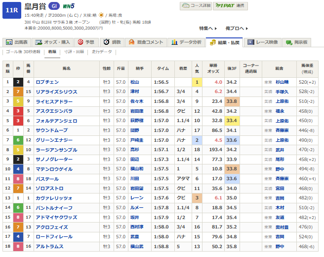 前回の記事で書いたように中山のコースから見るに、先行勢がそのままゴール出来るスタミナとパワー両方のバランスがあってこそ強い馬が勝つだろうと予想しました。