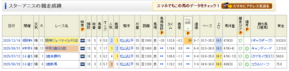 そして今回の注目馬としてあげるのはスターアニス。