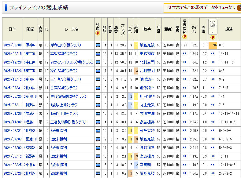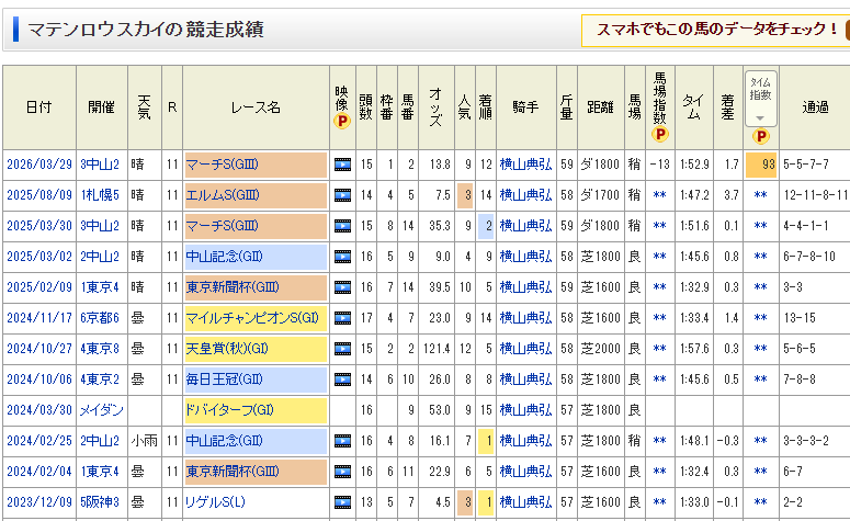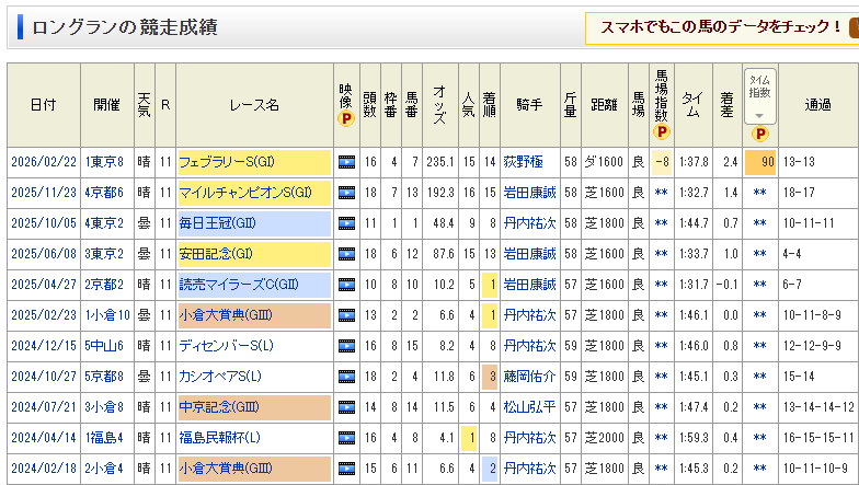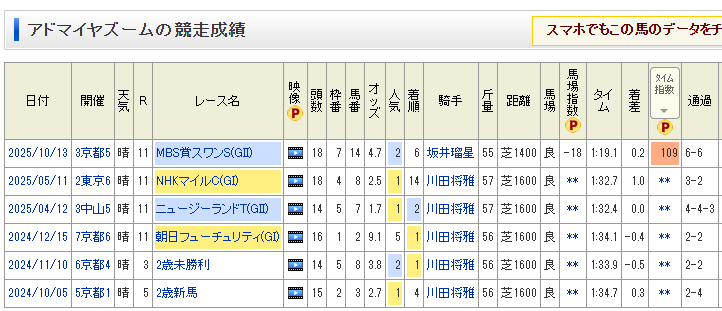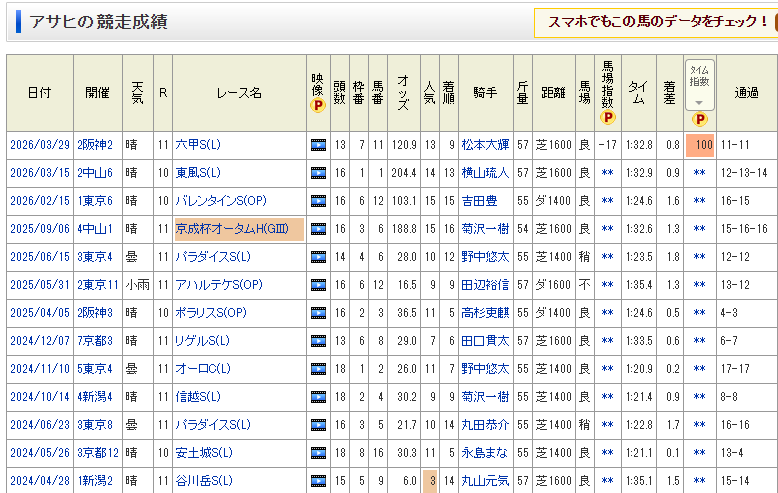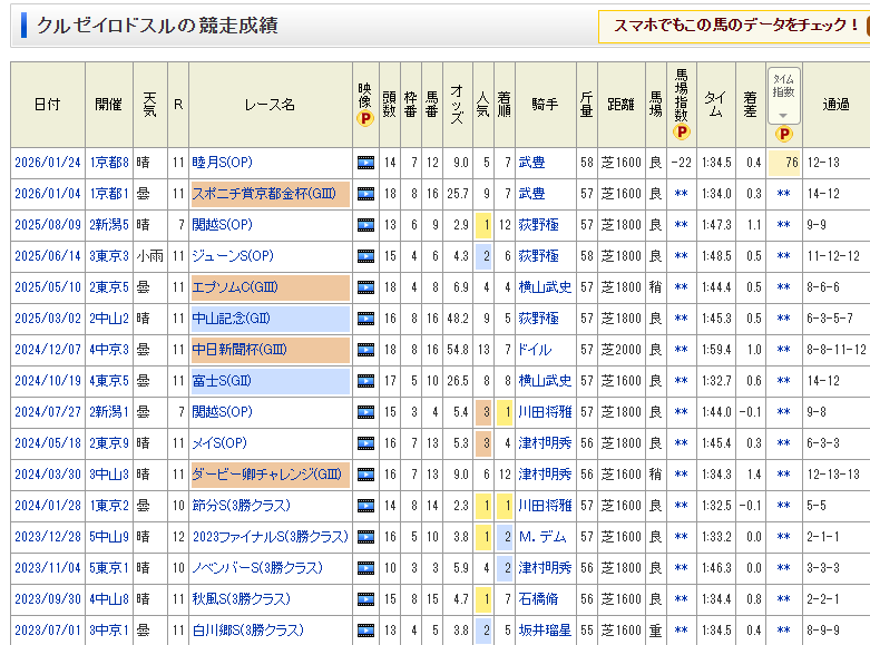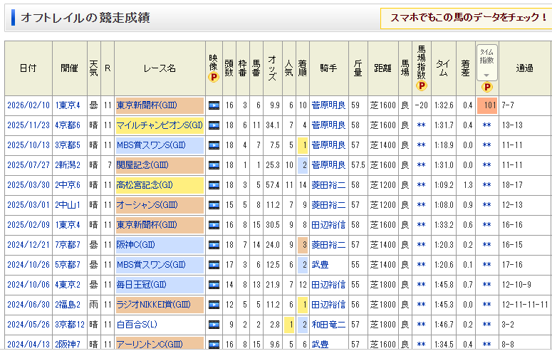 ほとんど重賞レースで埋まっているオフトレイルですが、今回はどうでしょう、京都コースでは、過去も馬券内に入っていますね。