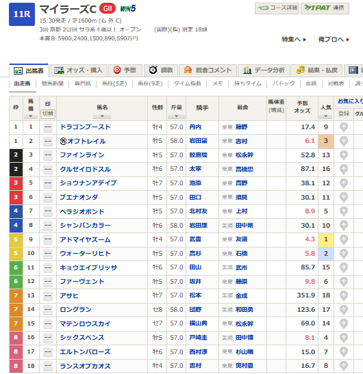 馬券内に入り込めるかどうか、が見物ですが、オフトレイルにとって京都は得意なコースではないかと思います。