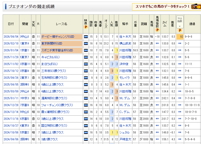 2年前ほどから馬券内に来ていないので、大穴レベルの馬になっております。
