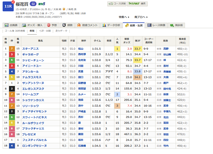 事実、スターアニスは3着以内に来るだろうなと思っていましたが