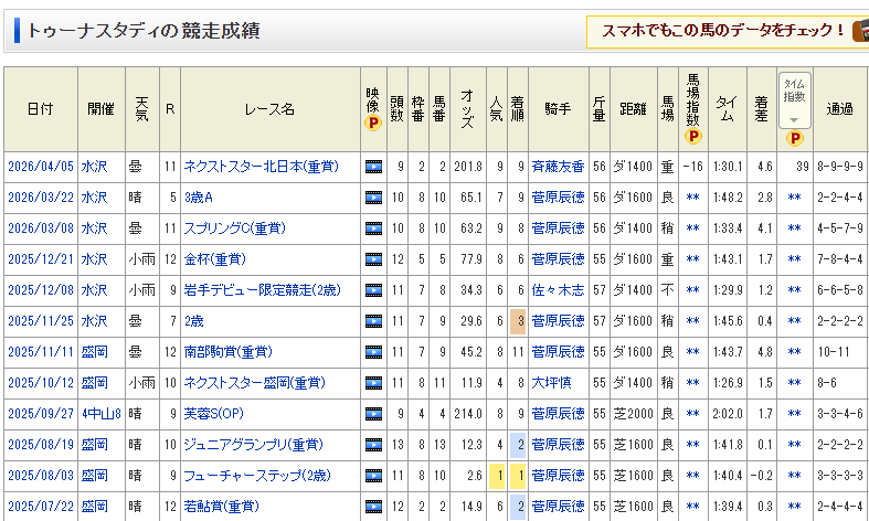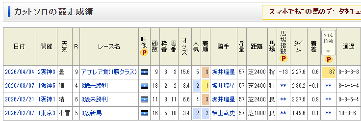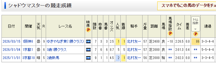 新馬➡一勝も難なく1位!こういった馬が期待されます。