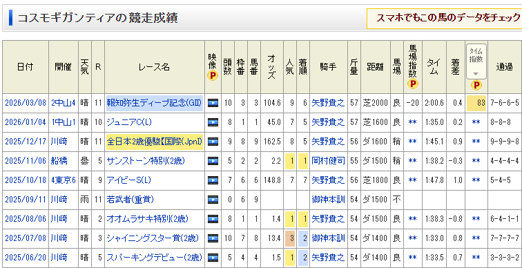 コスモギガンティアも、地方からの挑戦馬となっております。